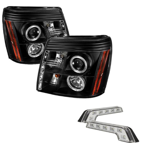 Carpart4u Cadillac Escalade DRL Halo LED Black Projector Headlights and LED Day Time Running Light Package . This item is designed for Cadillac Escalade 02-06 DRL Halo LED Projector Headlights - Black