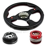 NRG-SRK-140H+007R+200RD, NRG Innovations 12.5" 320mm Black Leather Red Stitch Dual Horn Button Racing Steering Wheel Combo with 6 Hole Short Hub Adapter with Gen 2.0 Red Quick Release Kit SRK-140HNRG Quick Release features many options that conventional ball-locking quick release system do not. It is specially engineered with raised sections to prevent the scratching and stretching of the hub while a self locking feature adds increased safety and functionality. Features racing styled for added style and look. Each unit is made from the highest quality aircraft grade aluminum and is anodized for maximum durability and finish.