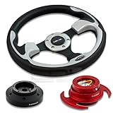 NRG-SRK-101H+001SL+650RD, NRG Innovations 12.5" 320mm Black Leather Silver Trim Racing Steering Wheel Combo with 6 Hole Short Hub Adapter with Gen 3.0 with Handle Red Quick Release Kit SRK-101H