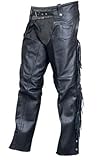 Unisex Motorcycle Chaps w/Braid & Fringe Trim, Buffalo LeatherThese chaps are a high quality leather chap designed with style and comfort. -------- made of Buffalo Leather which is a great quality leather that will last for many years.It is fully lined for maximum comfortability, beautiful braid trim & fringes on sides, outside pocket and heavyduty silver hardware. ------------- These chaps are manufatured by Allstate Leather the most trusted name in motorcycle leather ------- RETURN POLICY, We are confident you will love these chaps, but in any case you are not happy we have a 30 DAY RETURN POLICY. simply contact our friendly customer service to get an RA # ----------- SIZING INFO, To get the exact size and avoid size exchanges refer to the allstate leather chaps size chart by clicking on the seller company name above and follow the link at the bottom of the page.